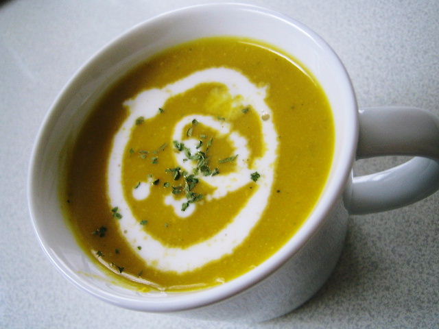 ①タマネギはクシ切り、南瓜は角切りにする(皮を剥くか剥かないかは、自由ヽ(●Д●)ノダァ━━・・・☆ )。どのみちミキサーにかけるので、この辺は適当でいいかと……