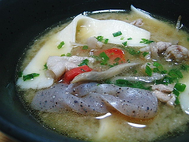 だんご汁を堪能するエティ。