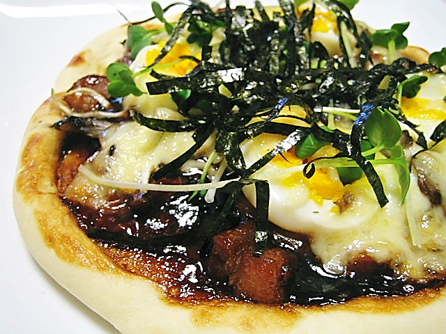 ⑨焼き上がったら、カイワレ大根、きざみ海苔を散らして出来上がり!