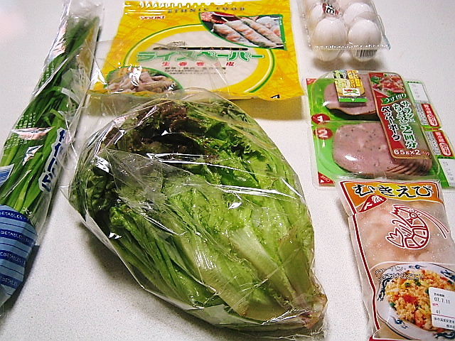 生春巻き(2個分。写真は1個を2等分にしたもの);・ライスペーパー2枚