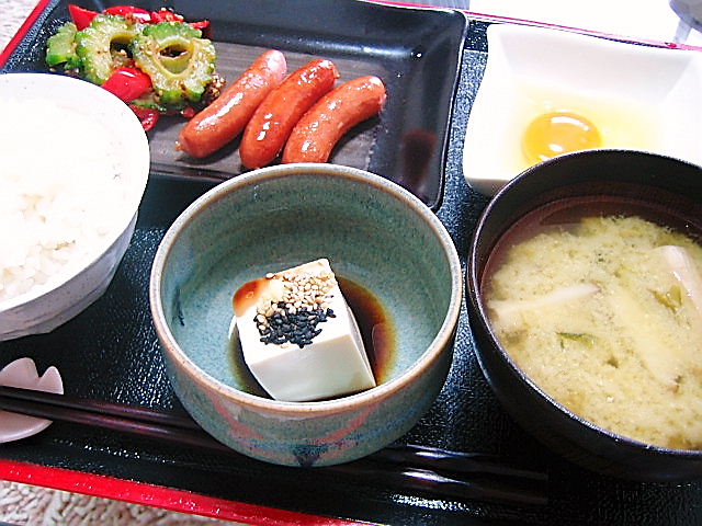 ≪8/13 朝ご飯メニュー≫・ゴーヤと赤ピーマンのおかかいため