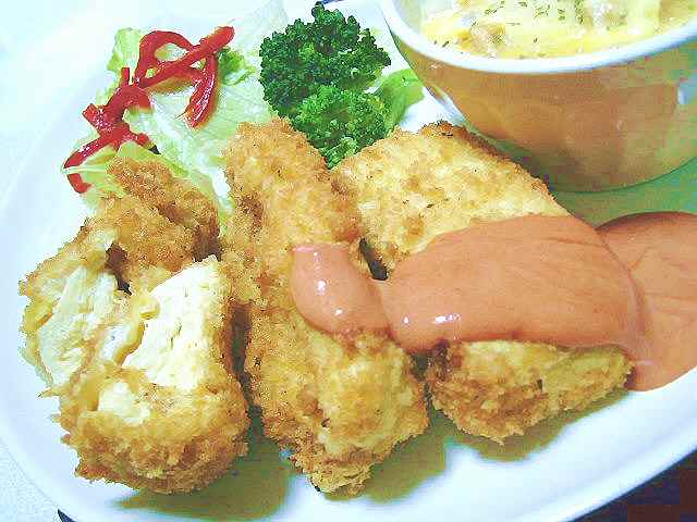 さっぱりしてるので、濃いめのソースと一緒に頂くといいかも?好みにもよりますが( ̄ー ̄)