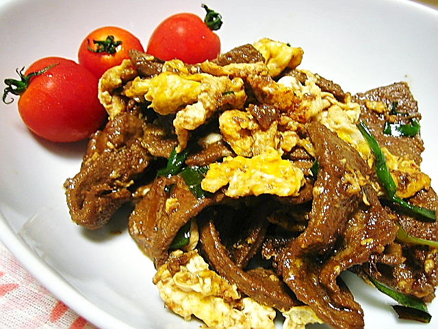 ≪10/9 晩ご飯メニュー≫・レバニラの卵とじ(+プチトマト)