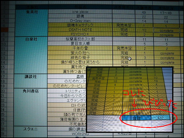 その途中ふと思い至って、エクセルで自分の漫画の種類や持っている巻数のリストを表に起こしてみたんです。