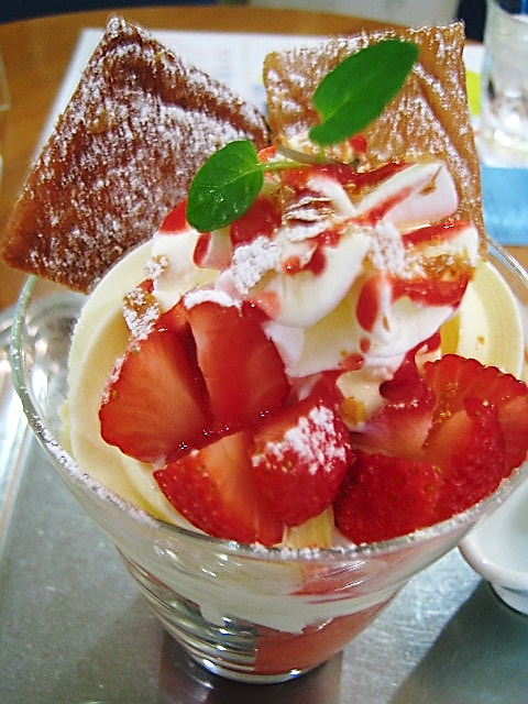 パフェの中ではティラミス・パフェが一番スキですが、今回はそれとは別の、イチゴミルフィーユパフェを頼んでみました。