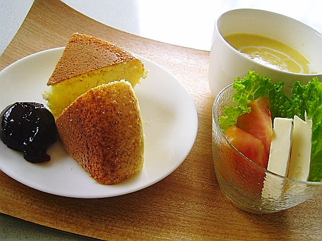 ホットケーキの他にはコーンポタージュスープを作りました。
