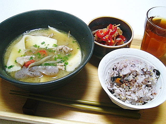 この日だんご汁は、朝ご飯にしたり今日のお昼用に会社に持っていったりするために多めに作りました。