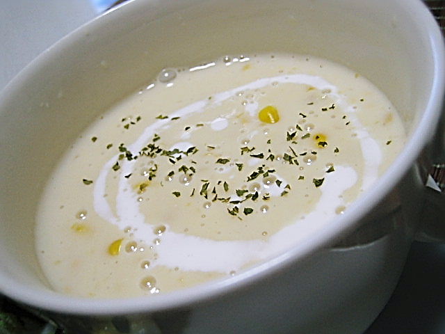 豆乳コーンポタージュスープ(2人分);・コーン缶(クリームタイプ)1/2缶