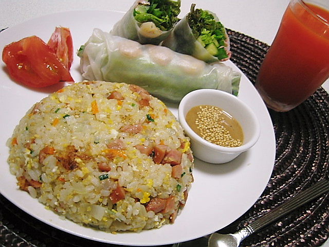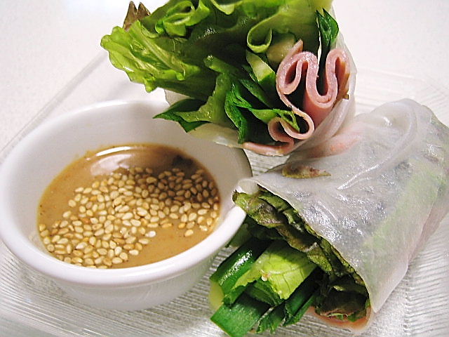 生春巻き(2個分。写真は1個を2等分にしたもの);・ライスペーパー2枚