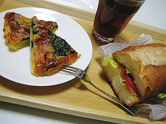 あとは昨日夜中にこさえたキッシュ(失敗しましたー。パイ生地がさっくりしてない……)をプラス。