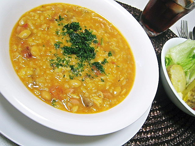 昨日のスープがたくさん残っていたので、それを使ってリゾットを作りました。
